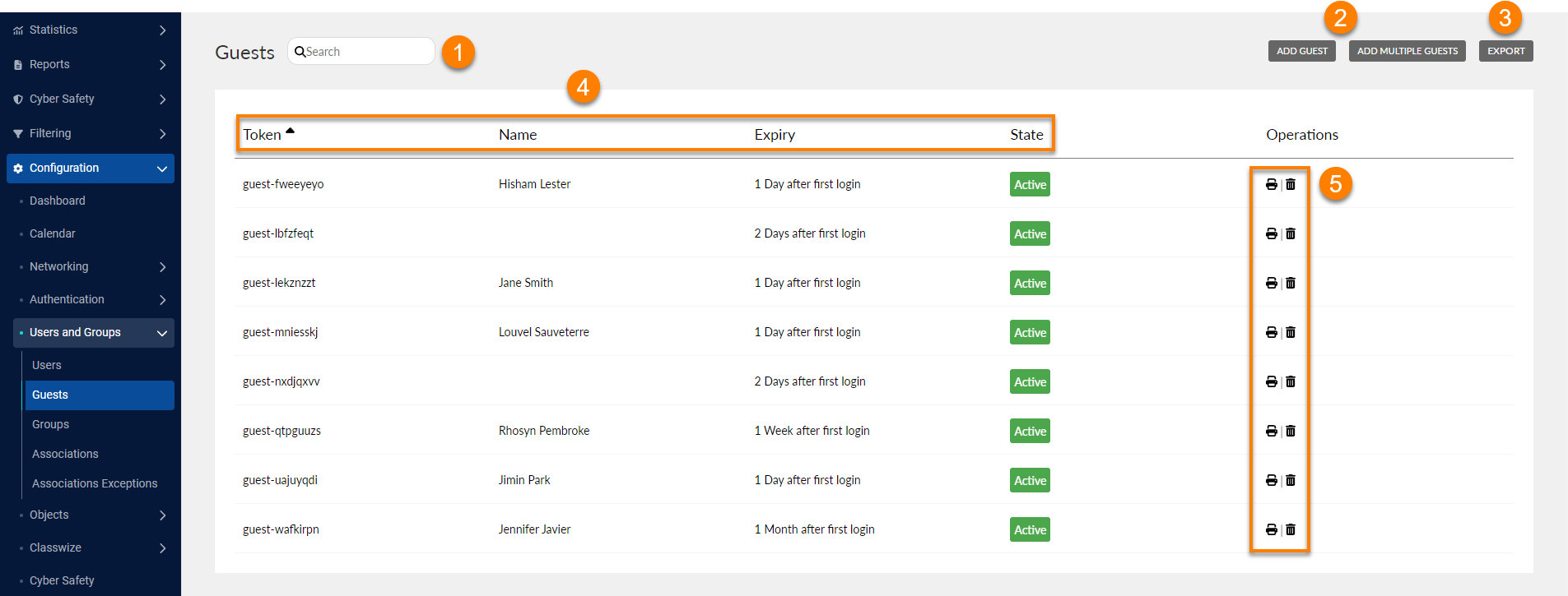 Guests are given temporary access to the network via the Guests configuration page.