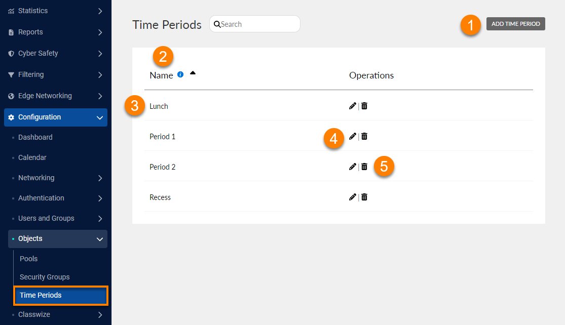- Select Add Time Period to configure a new time period.