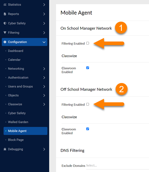 - When On Linewize Filter Network filtering is enabled, the Mobile Agent will provide filtering instead of the Linewize Filter Appliance.