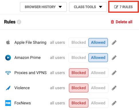 Classwize allows teachers to create class-specific filtering rules that either block or allow access to websites when their classes are in session.